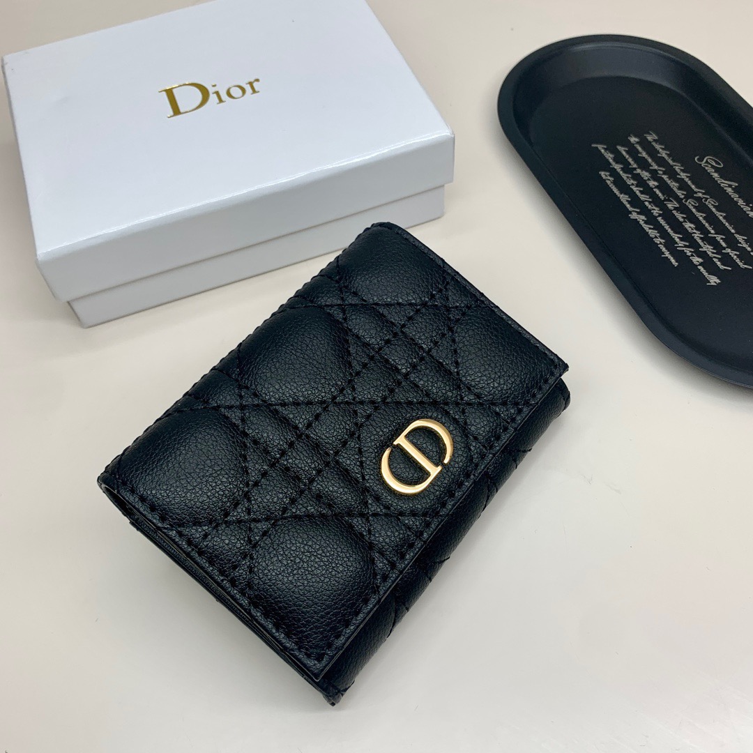 Dior Lady Mini Wallet, the latest model at the counter, color: black, size: 11 x 8.5 x 3cm.
