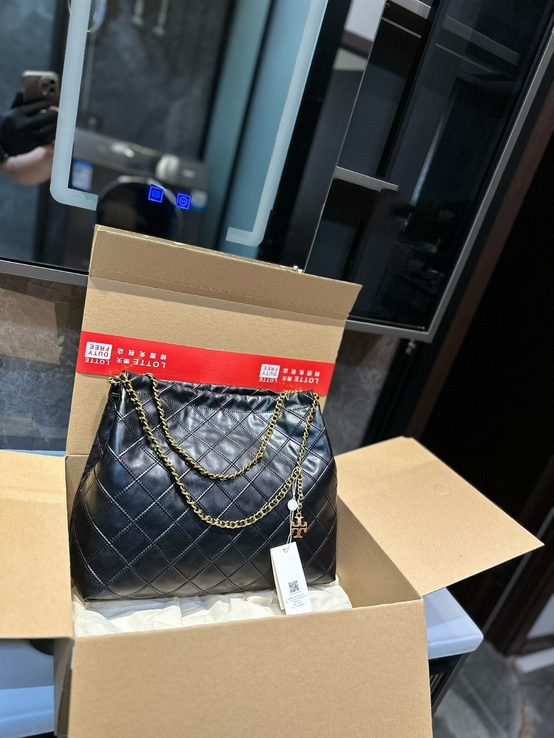 Toribochi TB diamond grid chain tote bag