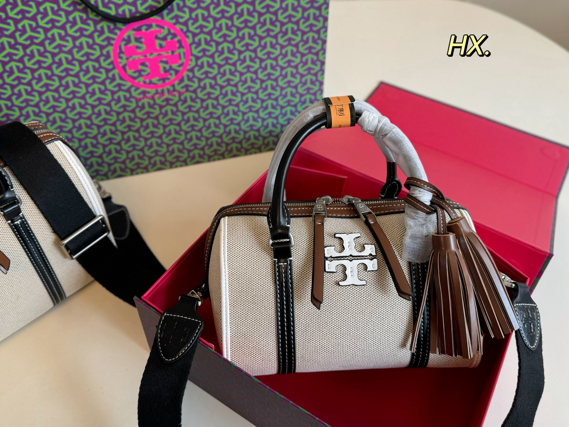TB Torribach's new canvas fringed Boston pillow bag