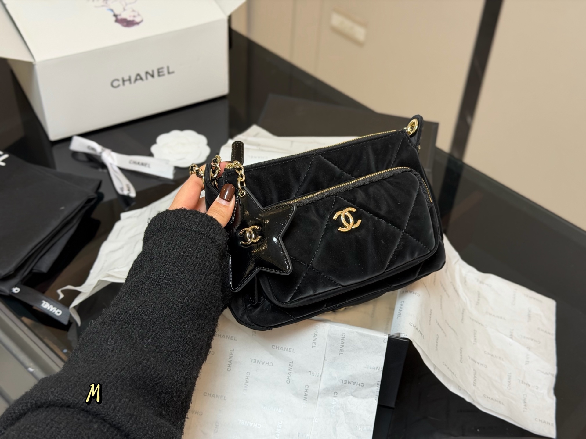Chanel's new 25N ski velvet pentagram camera bag